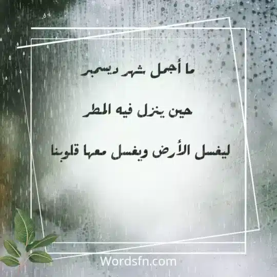 - ما أجمل شهر ديسمبر، حين ينزل فيه المطر ليغسل الأرض ويغسل معها قلوبنا
