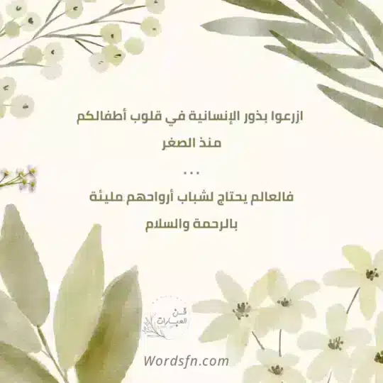 - ازرعوا بذور الإنسانية في قلوب أطفالكم منذ الصغر، فالعالم يحتاج لشباب أرواحهم مليئة بالرحمة والسلام