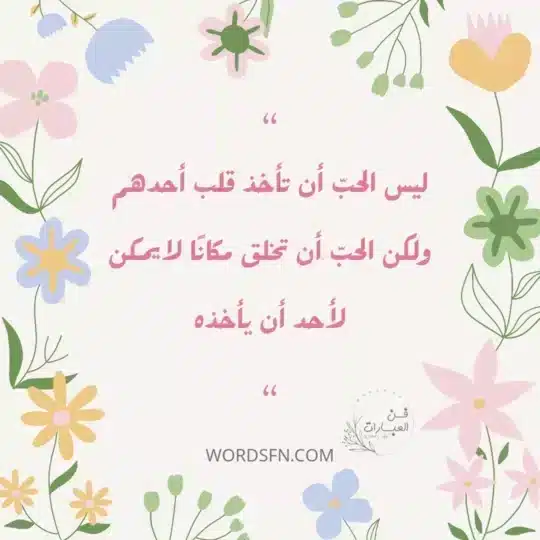 - ليس الحبّ أن تأخذ قلب أحدهم.. ولكن الحبّ أن تخلق مكاناً لايمكن لأحد أن يأخذه.