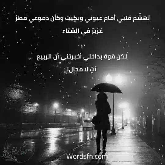- تهشّم قلبي أمام عيوني وبكيت وكأن دموعي مطرٌ غزيرٌ في الشتاء، لكن قوة بداخلي أخبرتني أن الربيع آتٍ لا محال