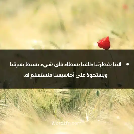 - لأننا بفطرتنا خلقنا بسطاء فأي شيء بسيط يسرقنا ويستحوذ على أحاسيسنا فنستسلم له.