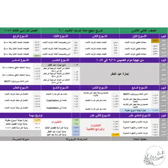 رابط تحميل توزيع مقرر إنترنت الأشياء1-2 pdf مباشر من موقع فن العبارات التعليمي.