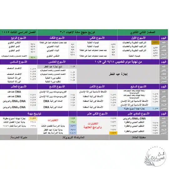 رابط تحميل توزيع مقرر الأحياء 2 pdf مباشر من موقع فن العبارات التعليمي.