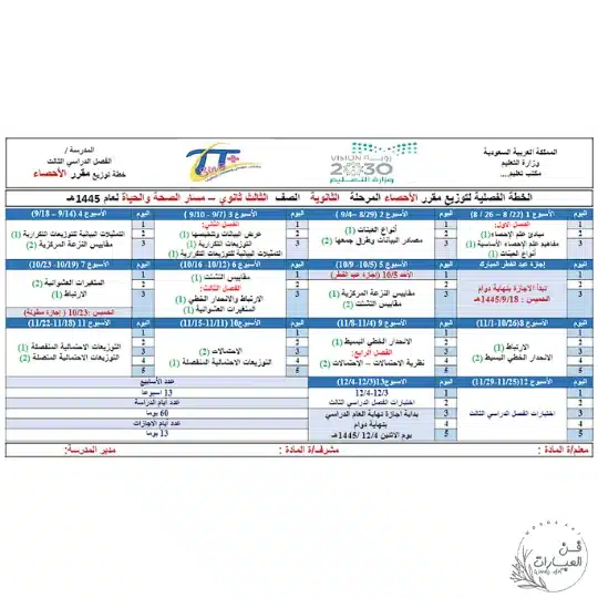 تحميل توزيع منهج الإحصاء مسار الصحة والحياة السنة الثالثة تعليم ثانوي الفصل الدراسي الثالث للعام 1445 هجري