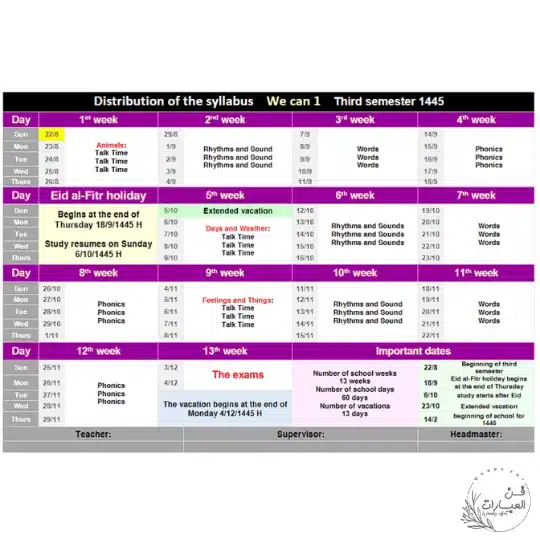 اول ابتدائي الفصل الثالث We Can 1 توزيع الانجليزي