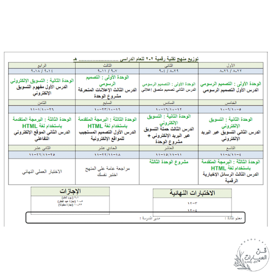 توزيع منهج مادة التقنية الرقمية 2 المسار العام السنة الثانية تعليم ثانوي الفصل الدراسي الثالث للعام 1445 هجري