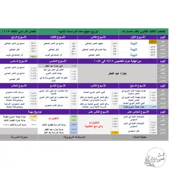 تحميل توزيع الدراسات الأدبية سنة ثالثة المسار الشرعي الفصل الدراسي الثالث للعام 1445 هجري
