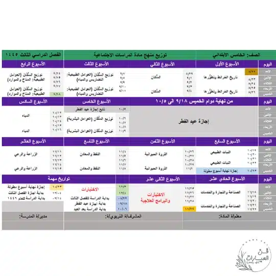 توزيع الدراسات الاجتماعية خامس الابتدائي الفصل الثالث
