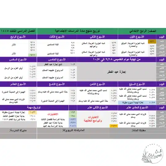 تحميل توزيع منهج الدراسات الاجتماعية رابع ابتدائي الفصل الدراسي الثالث للعام 1445 هجري