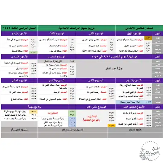 تحميل توزيع منهج الدراسات الاسلامية خامس ابتدائي الفصل الدراسي الثالث للعام 1445 هجري