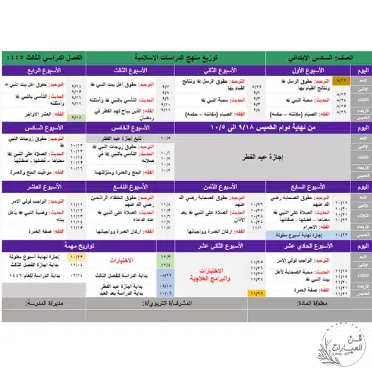 رابط تحميل توزيع مقرر الدراسات الاسلامية pdf مباشر من موقع فن العبارات التعليمي.