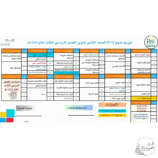 رابط تحميل توزيع مقرر الرياضيات2-3 pdf مباشر من موقع فن العبارات التعليمي.