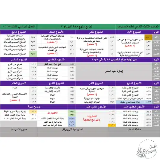 رابط تحميل توزيع مقرر الفيزياء 3 pdf مباشر من موقع فن العبارات التعليمي.