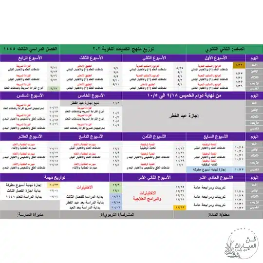 تحميل توزيع الكفايات اللغوية 2 سنة ثانية المسار العام الفصل الدراسي الثالث للعام 1445 هجري