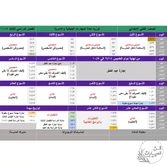 تحميل توزيع منهج المهارات الحياتية والأسرية الصف ثاني ابتدائي الفصل الدراسي الثالث للعام 1445 هجري