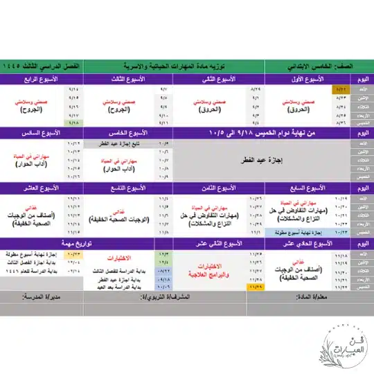 تحميل توزيع منهج المهارات الحياتية والأسرية الصف خامس ابتدائي الفصل الدراسي الثالث للعام 1445 هجري