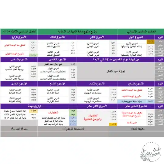 تحميل توزيع منهج المهارات الرقمية الصف سادس ابتدائي الفصل الدراسي الثالث للعام 1445 هجري
