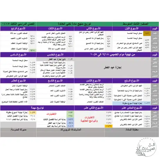 توزيع مادة لغتي الخالدة الصف ثاني متوسط الفصل الثالث