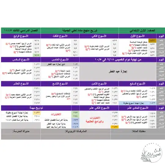 توزيع لغتي الجميلة أول ابتدائي الفصل الثالث